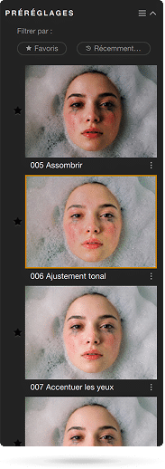 Le panneau vous permet également d’appliquer instantanément votre dernier traitement ou votre rendu favori à une nouvelle image en un seul clic.