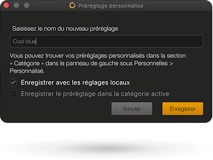 Exportez facilement des préréglages pour les partager avec d’autres utilisateurs ou importez-les afin de retrouver votre style préféré sur un autre poste de travail.