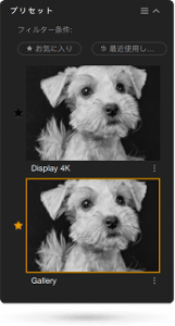 また、パネルからワンクリックで、お気に入りの編集や最後に適用した編集を新しい画像にすばやく適用することも可能です。