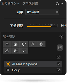 AI マスク:ピクセル単位で正確な被写体を瞬時にスマートに選択できます。