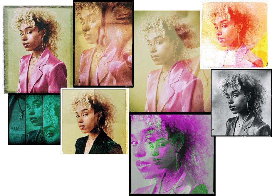 Combine powerful creative effects with authentic film-inspired looks, light leaks, and vintage textures.